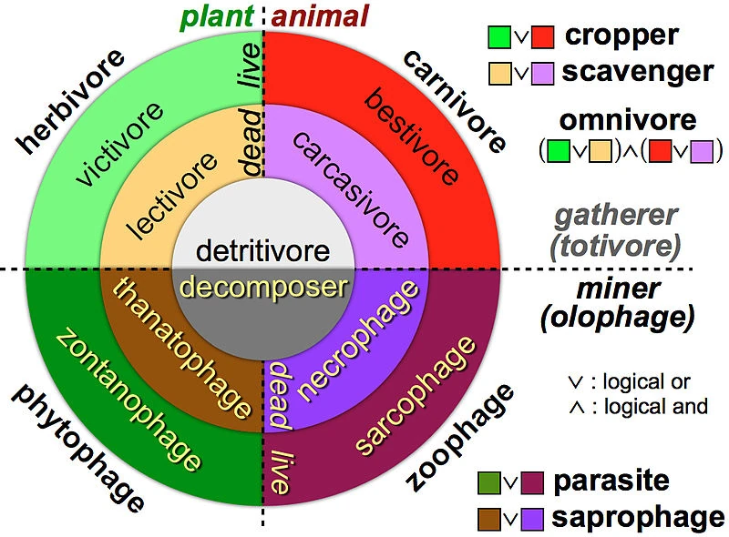 Diets involving decaying or inorganic matter:
